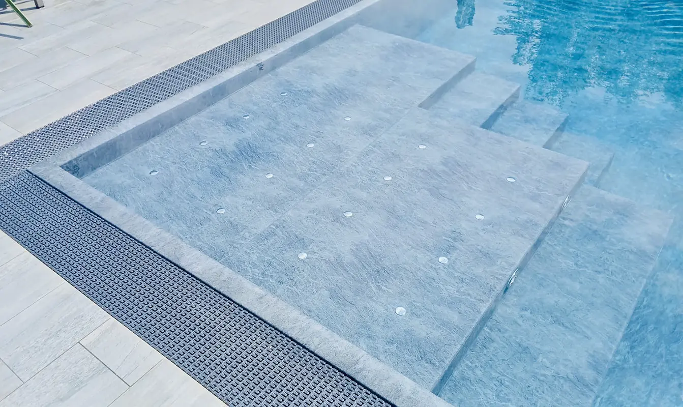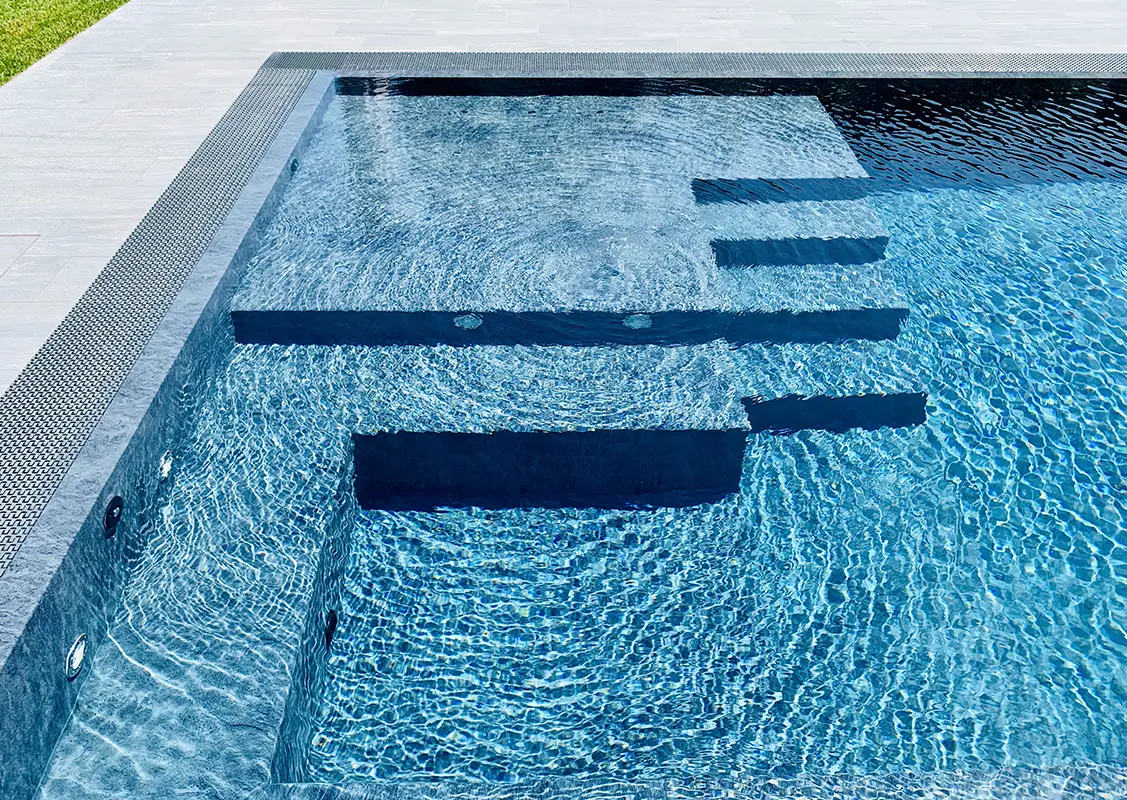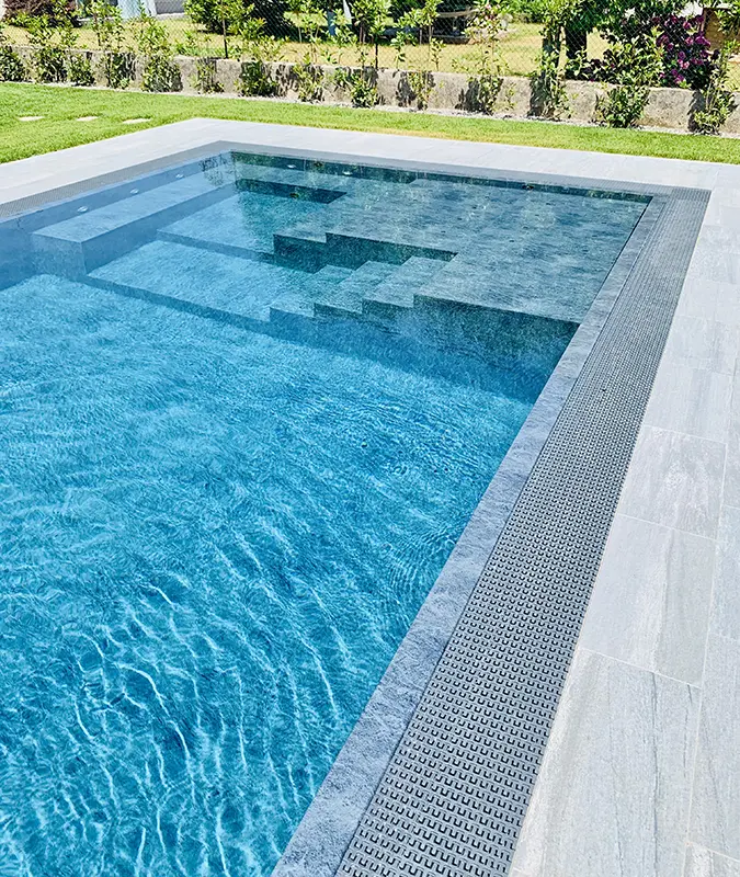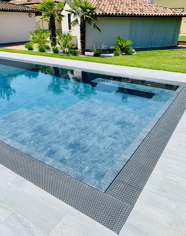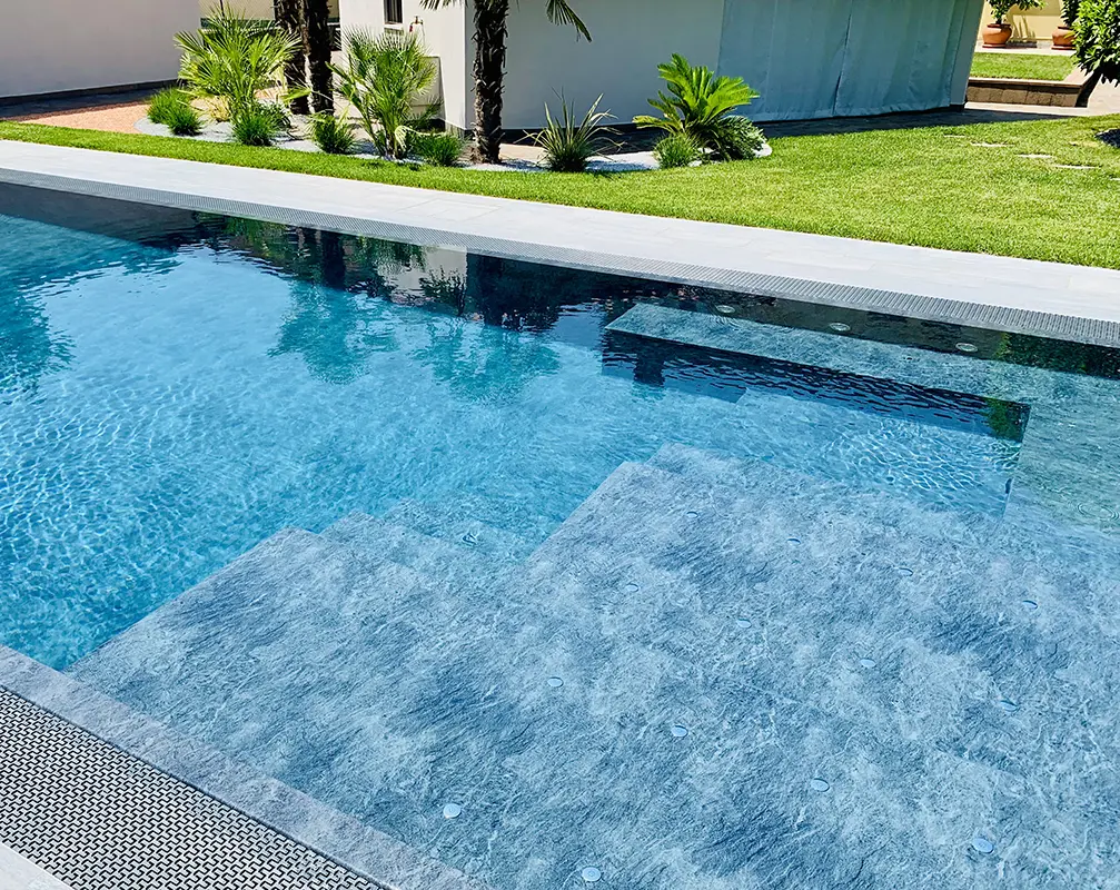 LightBlue è una piscina a sfioro, immersa nel verde del giardino. Il design pulito e contemporaneo valorizza l’intero spazio esterno, offrendo un’oasi ideale per rilassarsi e godersi momenti di benessere in totale tranquillità.