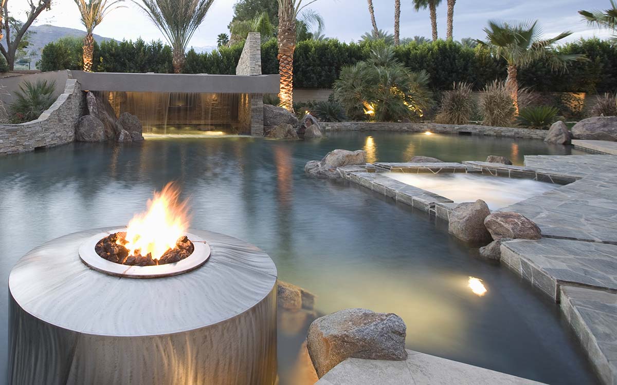 Fuoco ed illuminazione decorativa per la tua piscina interrata